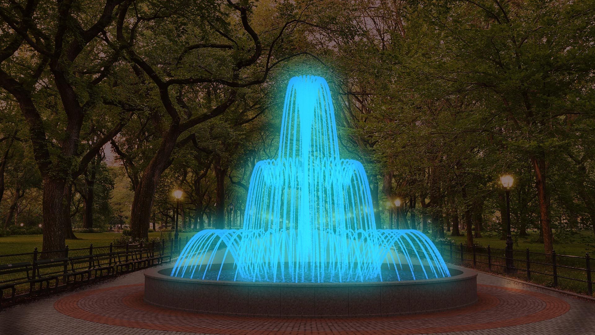 The colorful FullRGBTM lights emphasize the water feature in the evening darkness. The fountain sparkling in a variety of colors attract the visitors and becomes a real meeting point. The color of the fountain can be adjusted easily by a remote control either for one specific color of for a play of colors.
