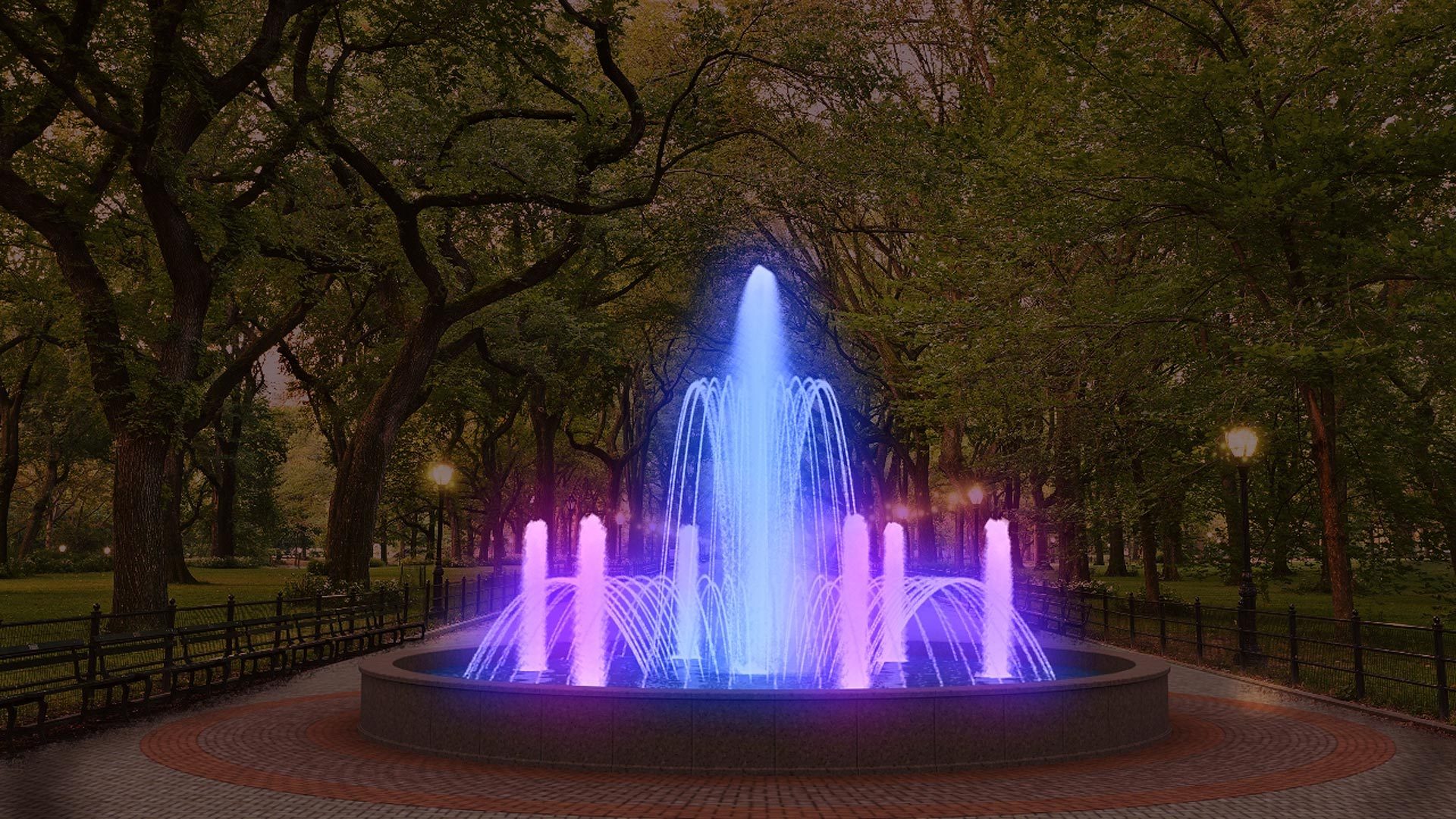 fountain set with lighting